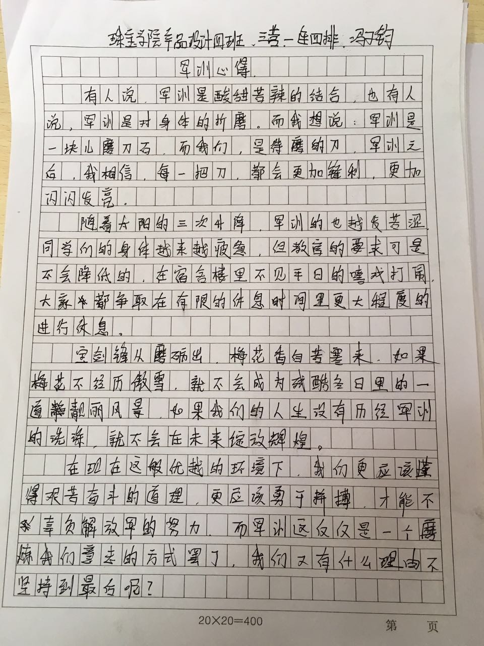 *2016级军训心得——16级产设4班 冯子钧 2016/09/21