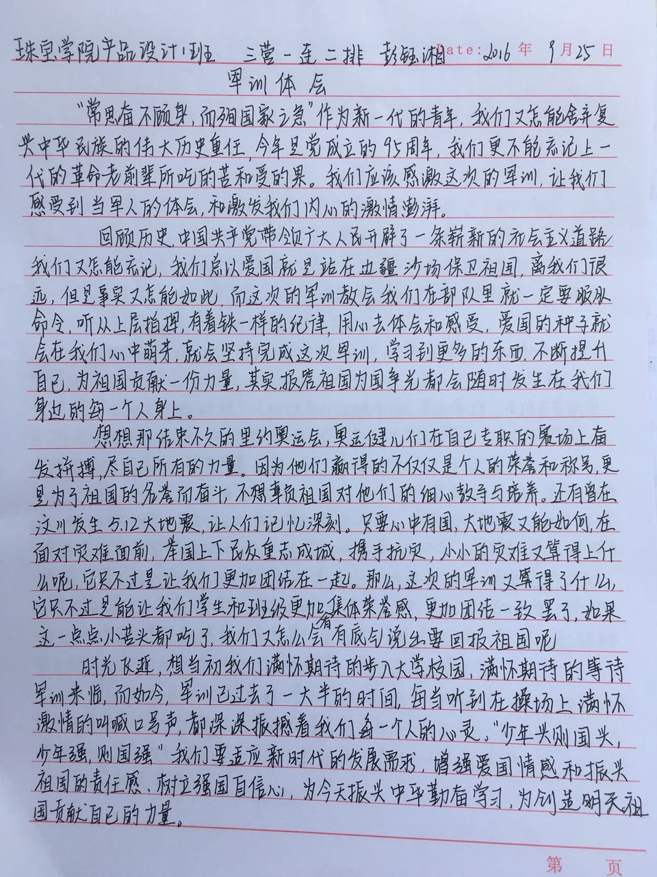 *2016级军训心得——16级产设1班 彭钰湘 2016/09/26