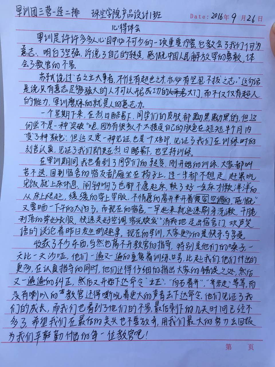 *2016级军训心得——16级产设1班 2016/09/27