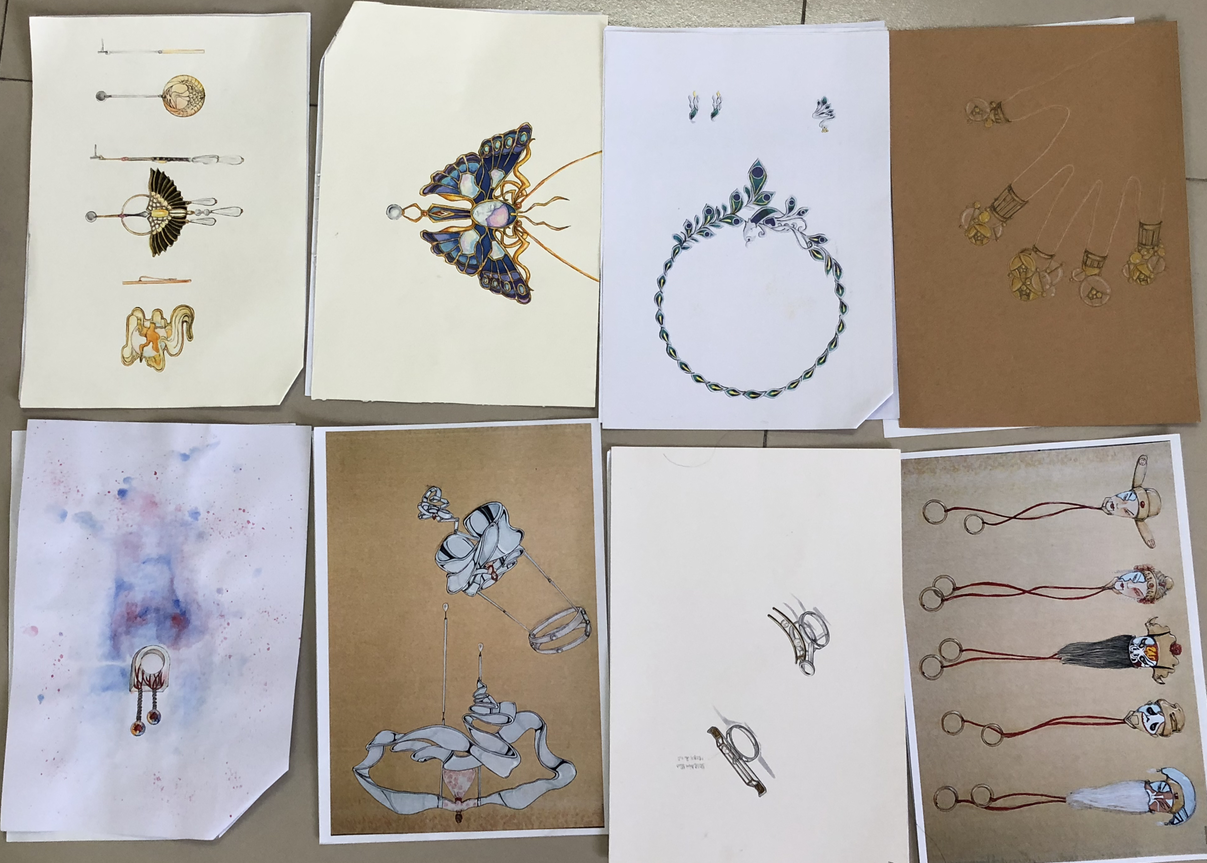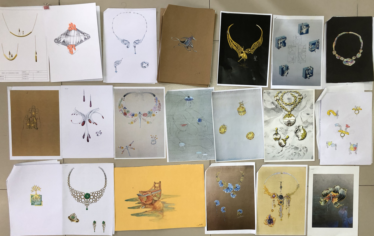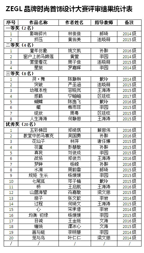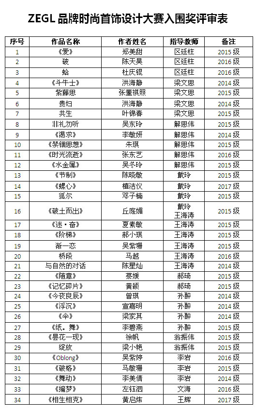 当天下午,主办方在A7-201室展出全部参赛作品,并邀请广州祯柳饰品有限公司(ZEGL)总经理曾柳柳先生一行进行评点。大赛评委由伟德国际1946院长冯敏教授、ZEGL公司总经理曾柳柳先生以及伟德国际1946专业老师郝琦、王海涛、连晓萌、翁振伟、孙醉等专家组成,经过评委们认真评选,从1760多套作品中评选出入围作品共96件。