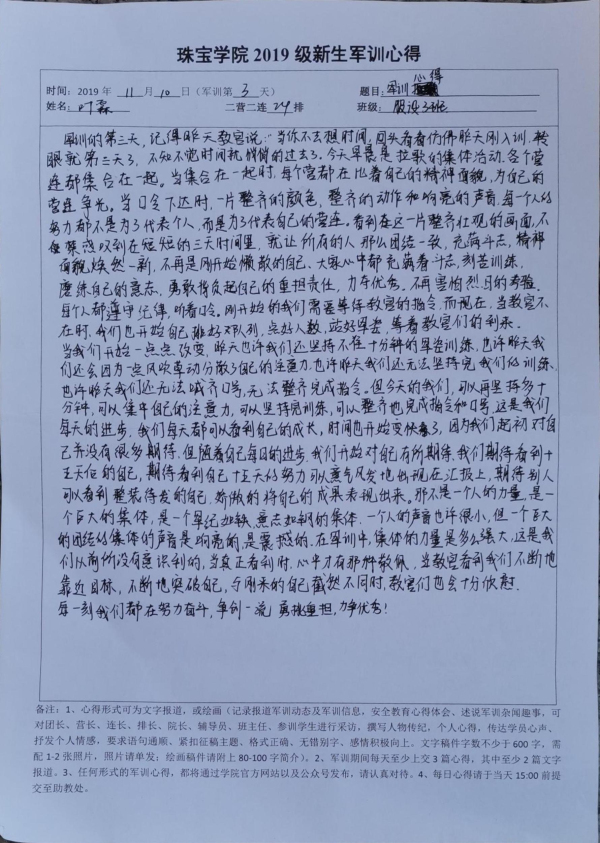 *2019级新生军训心得——19服设3班叶霖(二) 2019/11/10