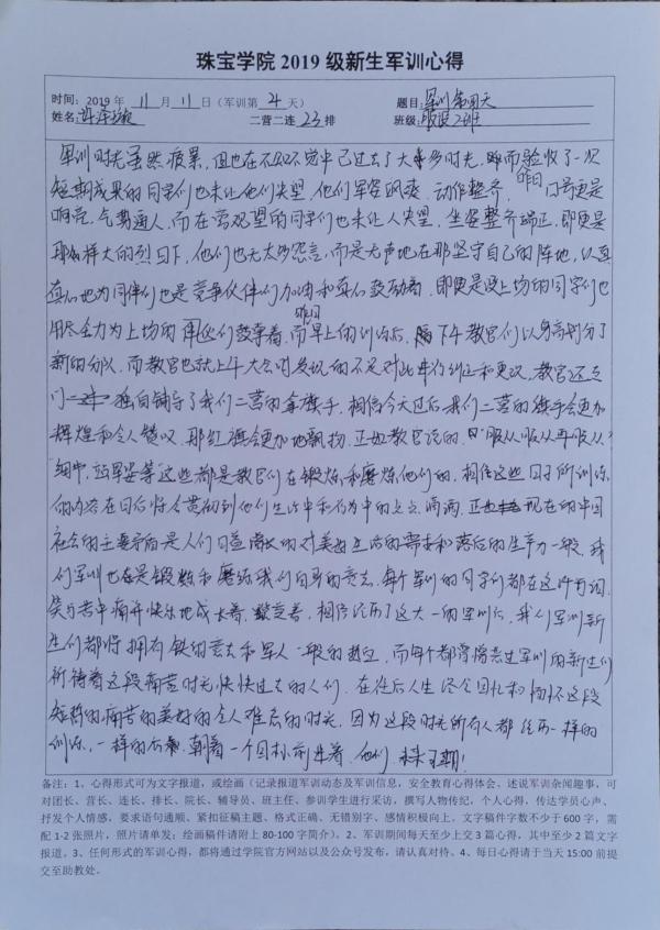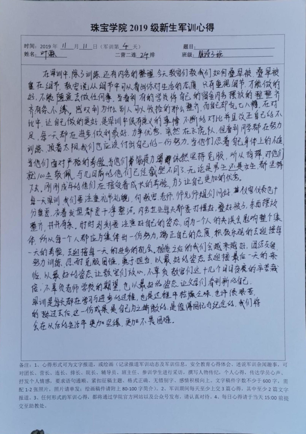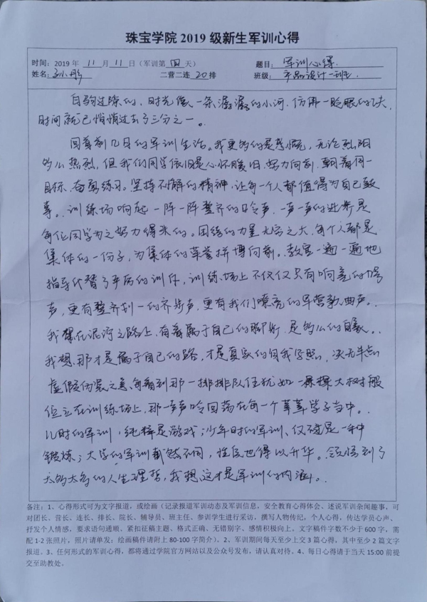 *2019级新生军训心得——11月11日小结(心得) 2019/11/11
