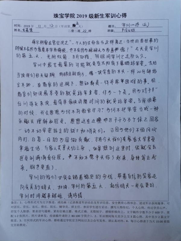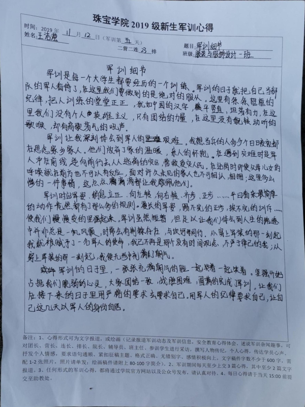 *2019级新生军训心得——11月12日小结(心得) 2019/11/12