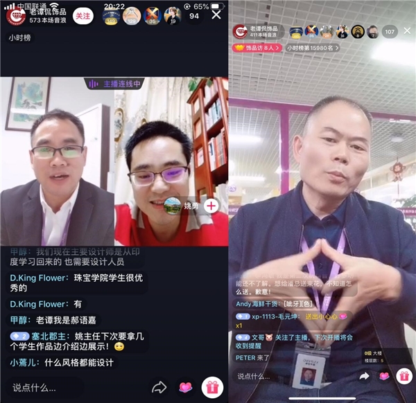 本次抖音直播对接会形式新颖,吸引了学生处处长张郡、不少珠宝电商负责人以及伟德国际1946学生前来观看。直播伊始,潘旭平董事长侃侃而谈,在轻松的气氛下分享了他对企业营销、人才需求等方面的见解,赢得大家纷纷点赞。