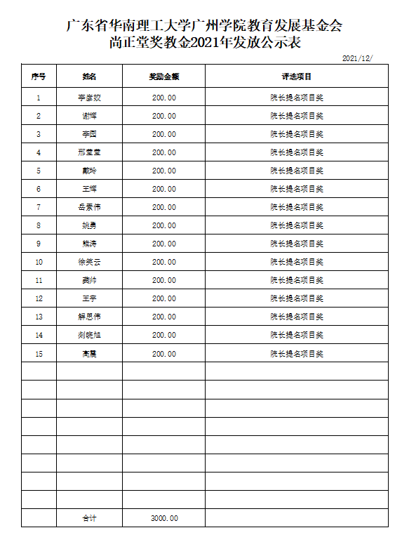 根据《广东省华南理工大学广州学院教育发展基金会“企业奖教金”教职工奖励办法》相关评审规定,伟德国际1946于2021年12月15日-12月25日,开展了2021年尚正堂奖教金评审工作。经评审小组及党政联席会议审核,现对初审通过教师名单(见具体表格)予以公示,并就有关事项通知如下: