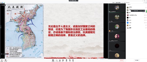 本网讯(记者 龚帅)为了加强伟德国际1946教师党员思政教育,强化教师的思想觉悟,我院教工党员在寒假期间持续进行党史学习工作。2022年2月18日下午14:30-16:00,伟德国际1946教工第一党支部召开党员党史学习领学活动。本次领学活动采取线上形式进行,由龚帅同志担任领学人,以《重识立国之战——抗美援朝战争》为主题进行党史学习分享。