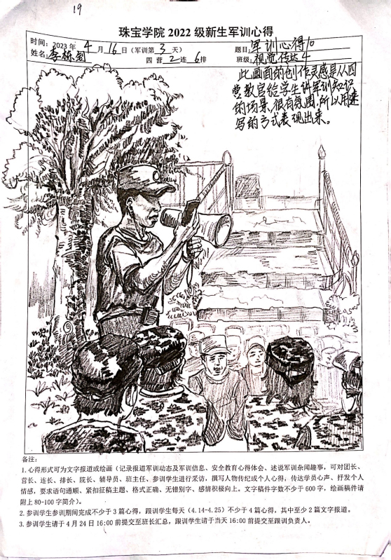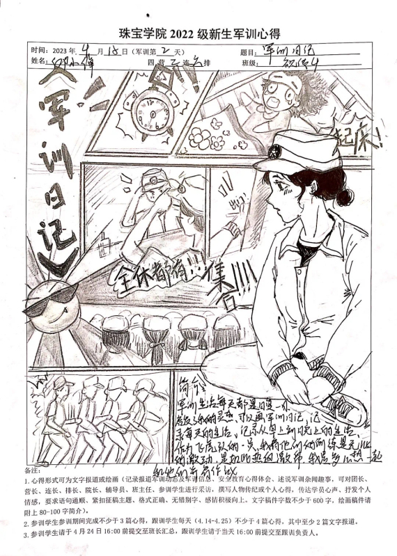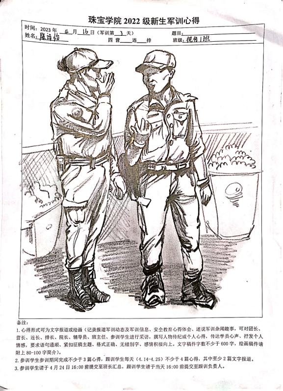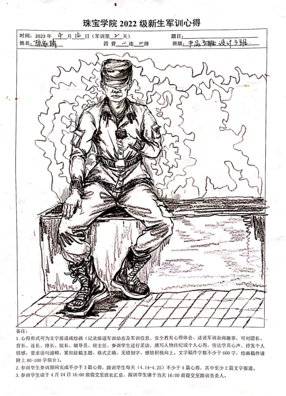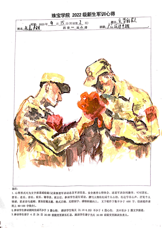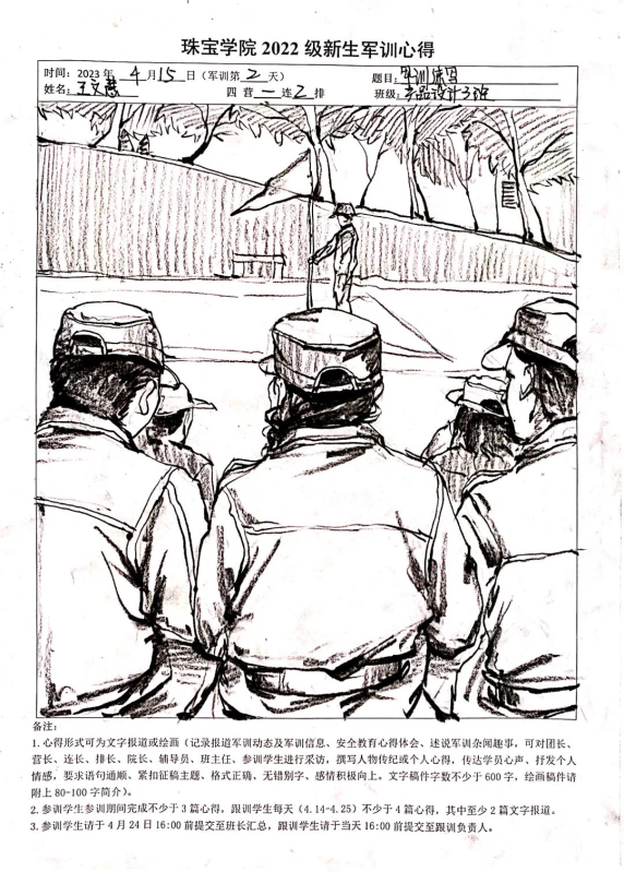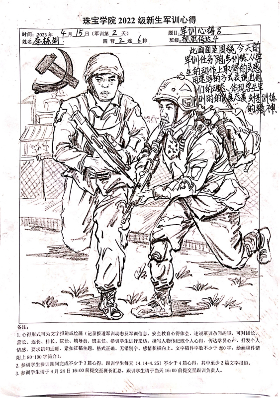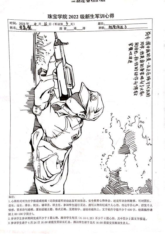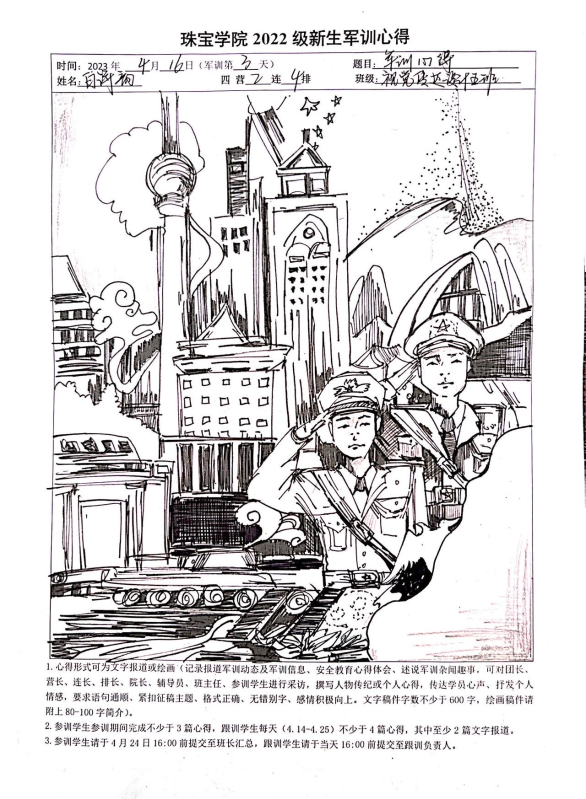 百花争艳的四月,处处芳菲浸染,22级新生军训虽迟但到。无论是烈日还是暴雨,伟德国际1946学子们坚强不息、不怕困难坚持训练,突破自己的舒适圈。除了在训练场上挥洒汗水,他们还通过手绘的方式描绘出了他们心中、眼中的军训。