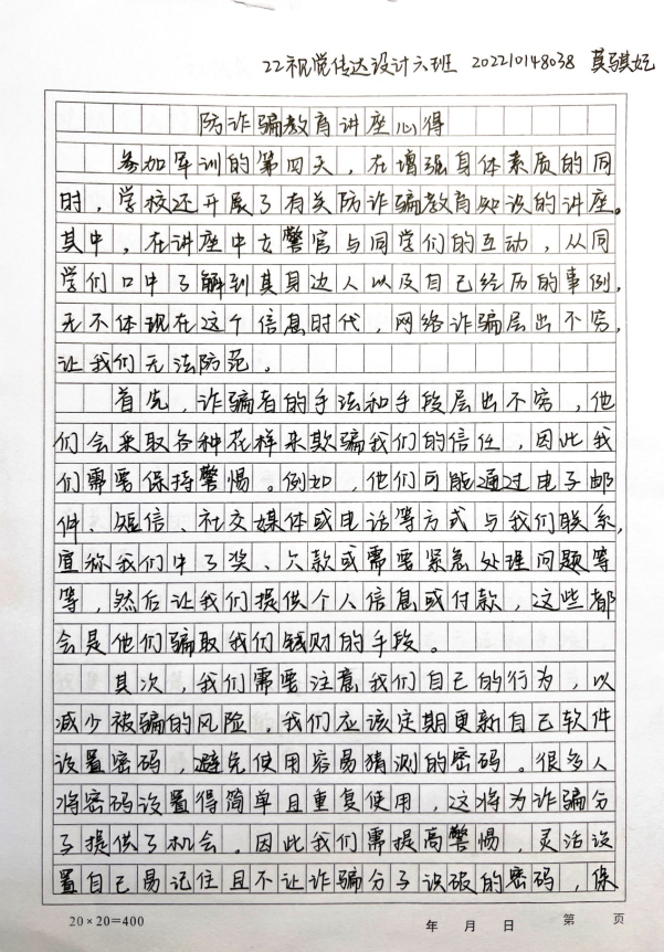 军训期间开展防诈骗安全教育的目的是为了让同学们提升安全意识,在这给大家整理了一批优秀的防诈骗教育讲座学习心得,让我们一起来学习吧!