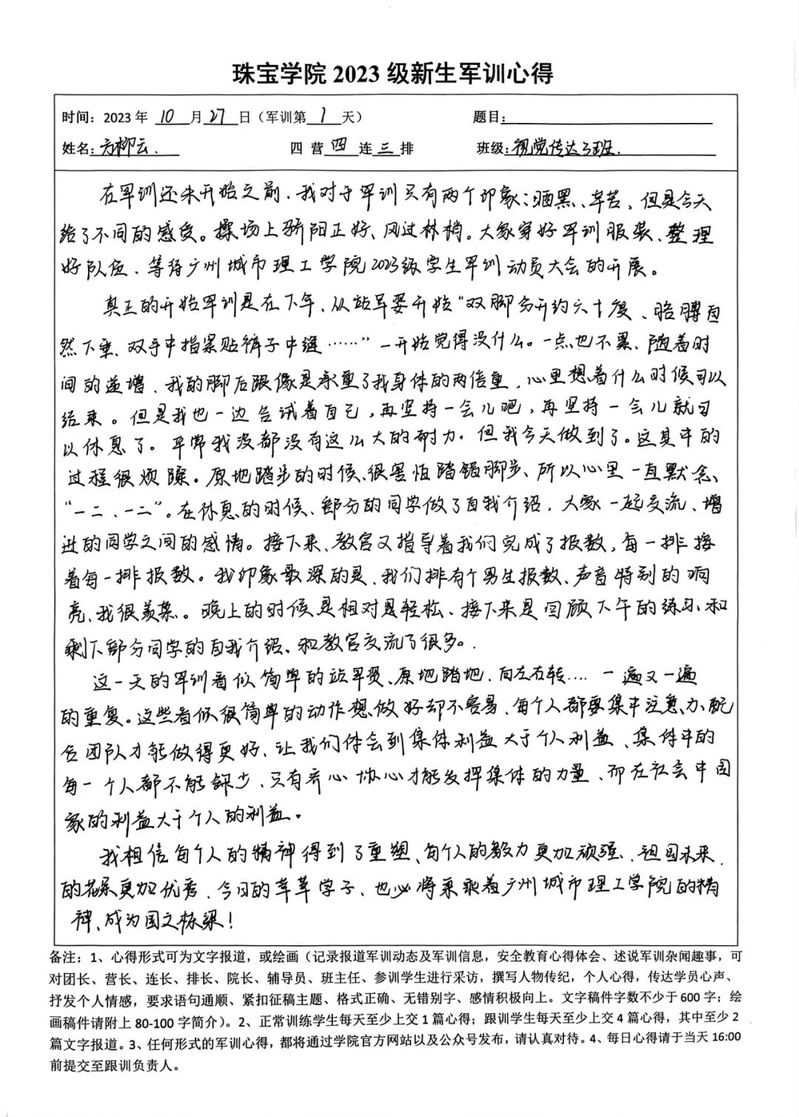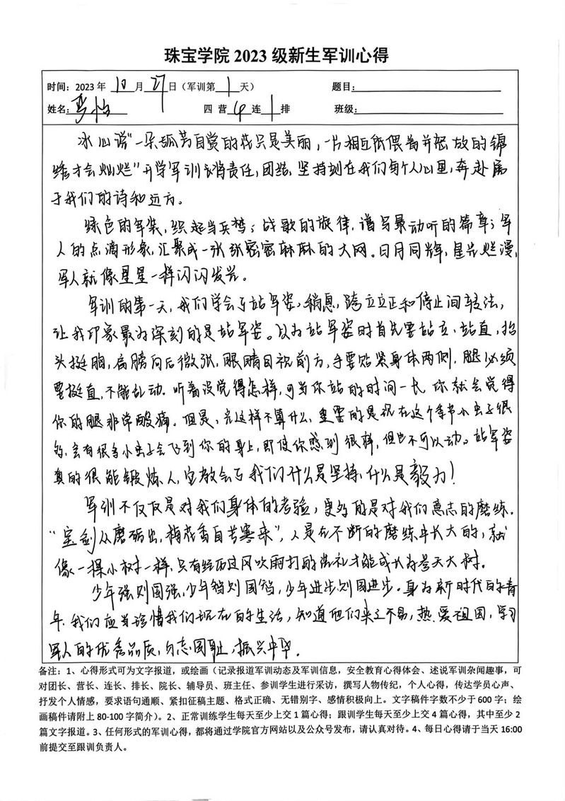 【军训特辑】2023级伟德国际1946新生军训心得优秀作品展示Day1