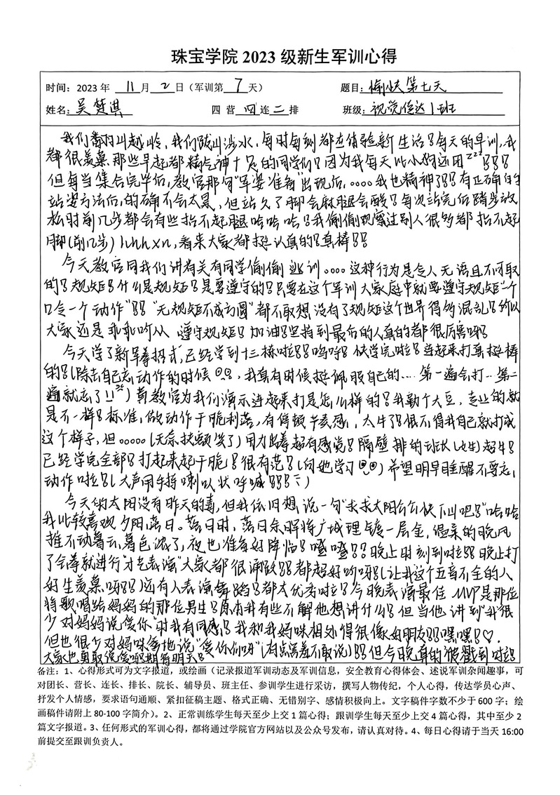 【军训特辑】2023级伟德国际1946新生军训心得优秀作品展示Day7