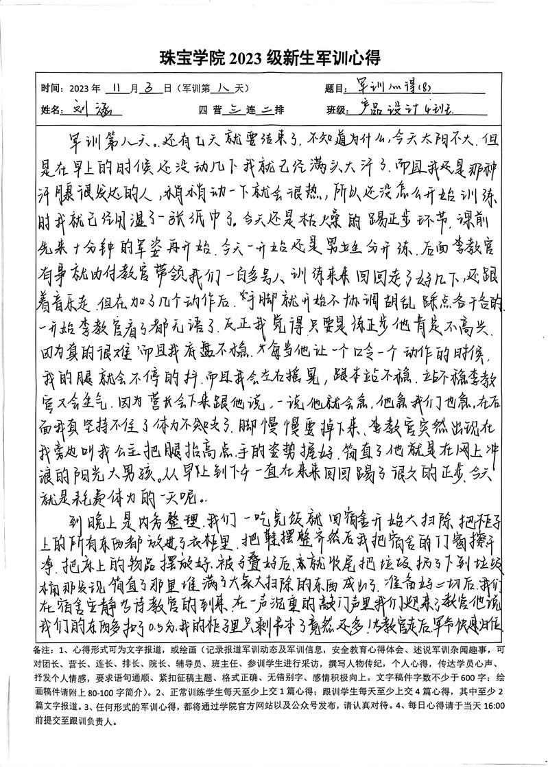 【军训特辑】2023级伟德国际1946新生军训心得优秀作品展示Day8