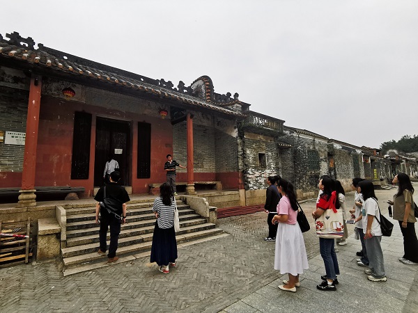 沿着小桥往里走,村中古建筑群气势宏伟,布局规整。村面建筑以宗祠及书室为主,人字或镬耳封火山墙,灰塑博古脊或龙船脊,石雕、砖雕、木雕及灰塑工艺较好。每到一处,大家都仔细观看建筑的内外结构和装饰特征,认真聆听讲解员的讲解,追随历史的足迹。通过一座座祠堂、一张张图片、一件件实物、一个个故事,感受百年古村的光辉历史。