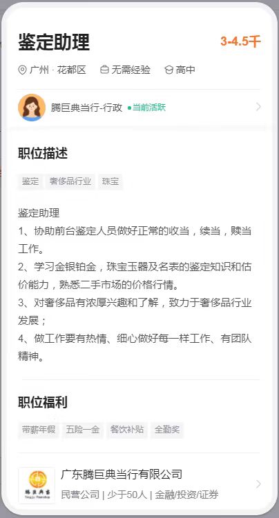 广东腾巨典当行有限公司 招聘实习生或助理。工作地点花都。