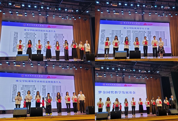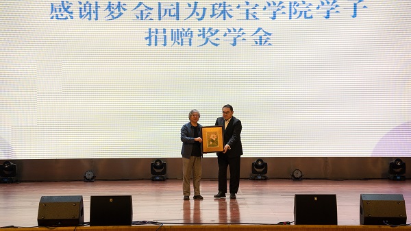 会上,学院领导及企业嘉宾为获得学院奖项及梦金园奖教学发展基金的学生颁奖。张珂代表学院向梦金园珠宝事业部总经理董石磊赠送学院师生制作的金绣作品,感谢梦金园对伟德国际1946学生发展、学院发展的支持。相信新的学年在学院领导的正确带领下、在企业对学院的鼎立支持下、在全院众师生的努力奋进下,伟德国际1946会愈来愈好。