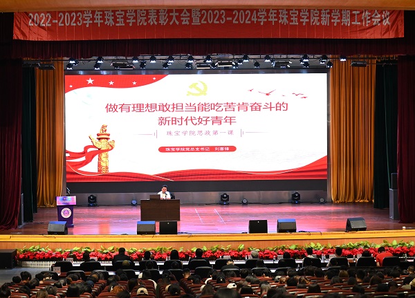 本网讯(记者 梁冰)为表彰学院在学术、实践和科技竞赛等方面表现出色的学生,激励更多学生追求卓越,部署2023-2024学年学院工作,伟德国际1946于3月27日下午在学生活动中心召开2022-2023学年伟德国际1946表彰大会暨2023-2024学年伟德国际1946新学期工作会议。梦金园珠宝事业部总经理董石磊、人资经理王丽,秀全派出所一级警长李政,伟德国际1946院长张珂、党总支书记刘喜锋、副院长邢莹莹、党总支副书记戴玲,学院全体师生参加了活动。