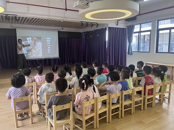 随后,支部党员刘一纯老师,为大家详尽地介绍了本次制作活动所需使用的各种工具及其用途。她通过生动的讲解和精准的示范,向幼儿园的孩子们展示了汉服独特的制作工艺,让孩子们领略到了中华传统文化的魅力。孩子们在认真聆听讲解的同时,充满好奇与兴奋。
