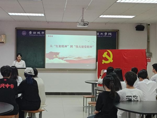 仪式结束后,现场进行了以“青春心向党 奋进新征程”为主题的党日活动。马锦娴开展了“从‘红船精神’到‘伟大建党精神’”的微党课,分别对“红船精神”、“伟大建党精神”以及两者之间的关系进行了阐释,引导党员同志们不忘初心与使命,赓续红色血脉,用党的奋斗历程和伟大成就鼓舞斗志、指引方向,用党的光荣传统和优良作风坚定信念、凝聚力量,用党的历史经验和实践创造启迪智慧、砥砺品格,继往开来,开拓前进。随后,在场同志积极分享了学习心得。2022级产品设计专业的李同学表示,通过学习“红船精神”和“伟大建党精神”,她将更坚定地学习积极进取的理念,继续提高自己的政治素质和工作能力,积极地为推进党的伟大事业添砖加瓦,贡献青年力量。