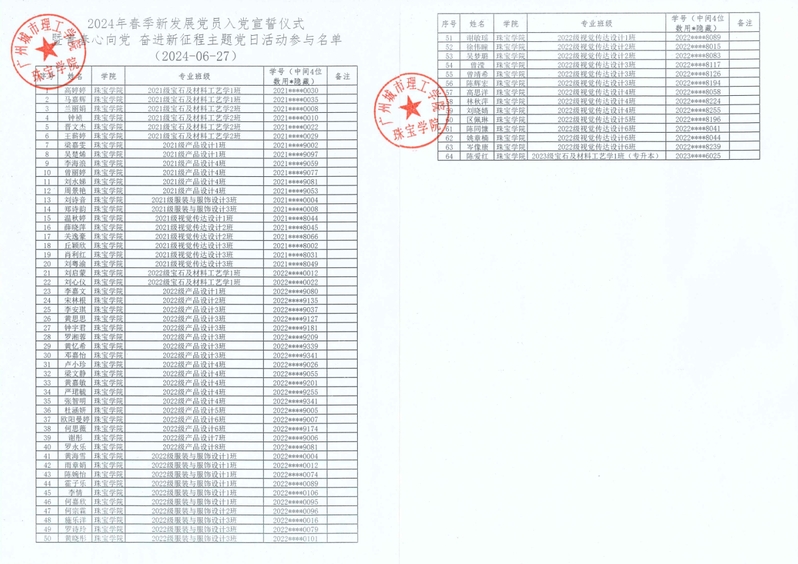2024年春季新发展党员入党宣誓仪式暨青春心向党 奋进新征程主题党日活动参与名单公示
