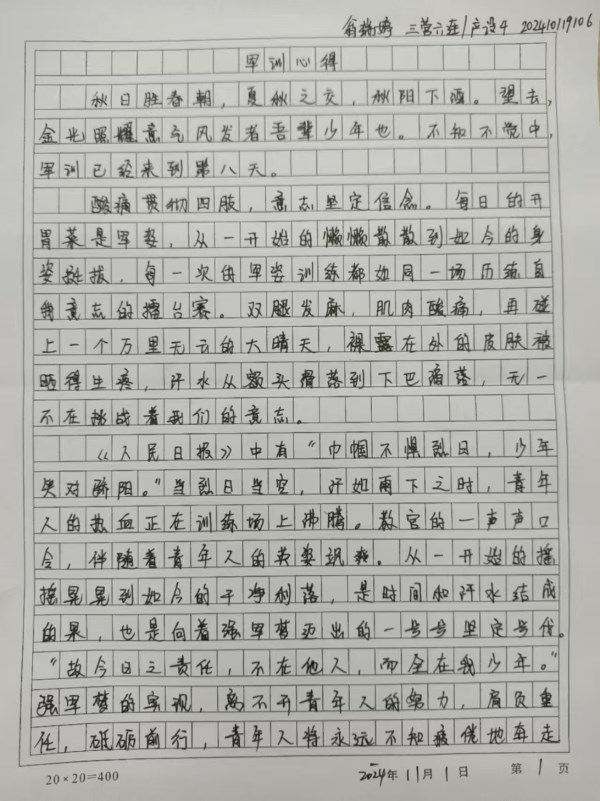 【军训特辑】2024级伟德国际1946新生军训心得优秀作品展示Day9
