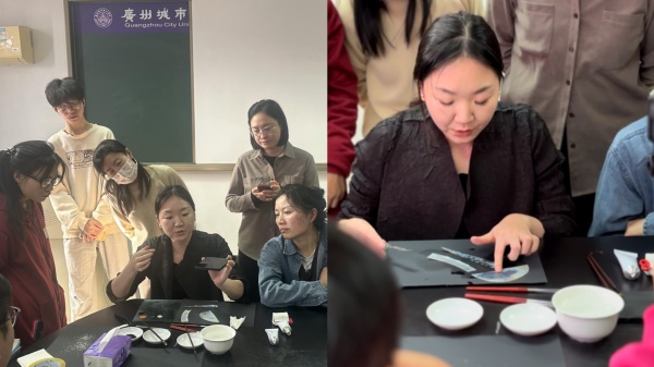 活动分为两大板块:非遗技艺讲座和非遗技艺实践。上午,张丹讲授大漆螺钿工艺,对非物质文化遗产大漆工艺的发展历程进行了概述,并重点阐述了螺钿镶嵌的历史背景、工艺流程以及艺术特色。她通过丰富的案例和图片,生动地展示了螺钿镶嵌工艺的独特魅力。