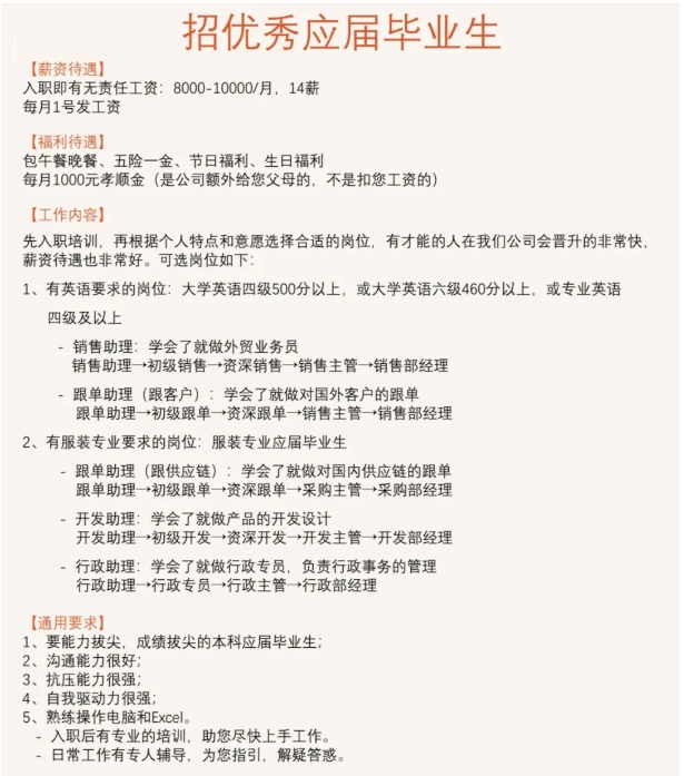 广州星纺服饰有限公司招聘信息