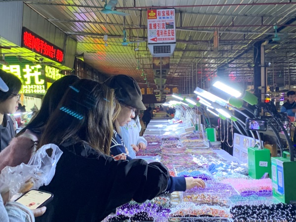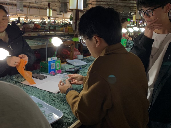 当天抵达天光墟玉器市场后,在带队老师简要介绍市场情况,然后学生们分组自由参观,仔细观察市场内的各种产品,并与摊主积极交流。