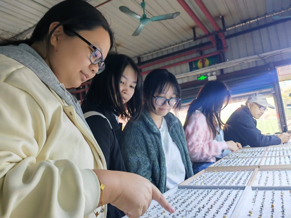 24级产品设计专业学生李庚祺则表示:“在天光墟市场的研学中,我亲眼目睹了玉石交易的繁忙景象,老师们凭借丰富的经验与独到的眼光教导我们如何辨别玉石的优劣。她们的讲解让我深刻感受到玉文化的博大精深,玉石不仅是饰品,更承载着历史、品德与美学内涵。”