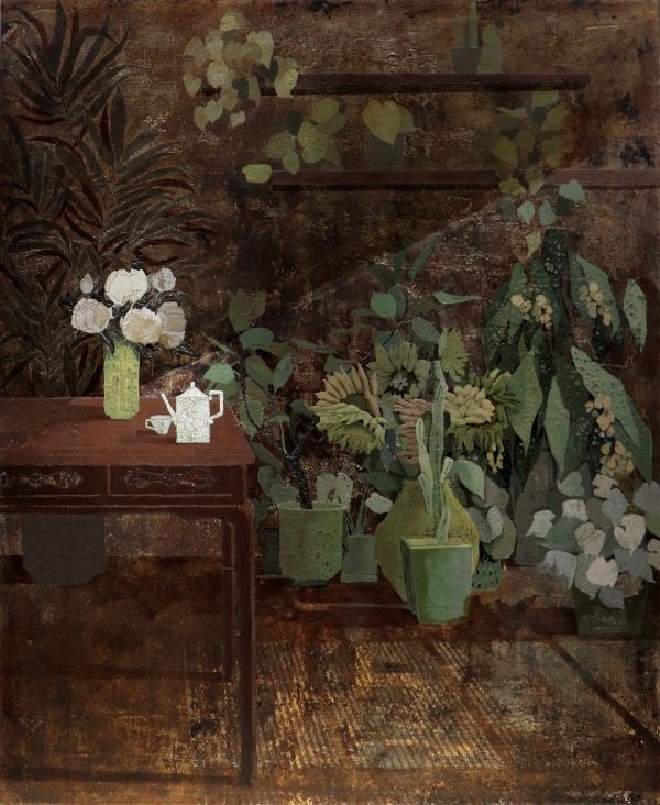 李然的《静致·卉木萋萋》是一件将自然之美与漆画艺术深度融合的佳作。画面聚焦于一片静谧的自然景致,“卉木萋萋”之态在其笔下栩栩如生。在创作过程中,巧妙地运用了漆画独特的材料质感与表现技法。从底漆的铺垫开始,便精心营造出画面的层次感与深邃感,使得观者仿佛能够透过画面感受到那片草木背后的幽远空间。在色彩运用上,以低调而富有内涵的色调为主,通过对不同漆色的调配与叠加,细腻地表现出草木在光影下的微妙变化。比如,在描绘树叶时,运用了多层薄涂的技法,使树叶呈现出丰富的色泽与纹理,仿佛被阳光穿透,又似被微风轻拂而微微颤动。每一处笔触、每一层漆色的叠加,都凝聚着李然对自然细致入微的观察与对漆画艺术的执着追求。作品所传达出的宁静致远的意境,不仅仅是对自然景观的描绘,更是一种对内心宁静与生命本真的深刻探寻,展现其深厚的艺术修养与敏锐的艺术感悟力。