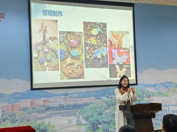 李然老师讲解螺钿首饰制作(史建来 苏煜桓 摄)