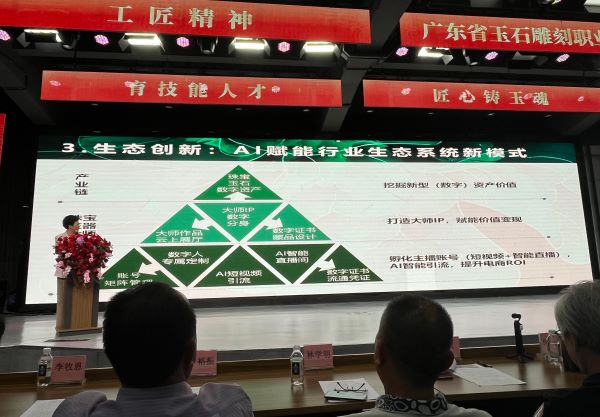 AI专家林倩钧女士以“AI赋能珠宝玉石行业发展”为主题,从多角度、多维度分析了AI技术正深度重塑珠宝玉石行业,并推动设计、生产、销售全链条的智能化转型。她表示,AI将进一步融合艺术与科技,重构行业标准,加强技术整合、人才培养与数据安全,以把握智能化浪潮的机遇,助力中国珠宝玉石行业在全球化竞争中占据创新高地。