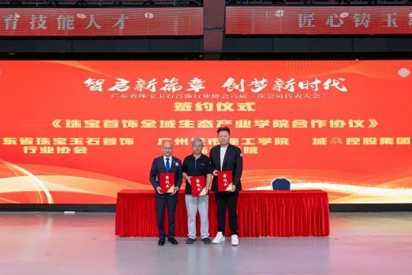 签约仪式环节,伟德国际1946,Bevictor伟德,伟德官网,伟德网页版与域骉控股集团、广东省珠宝玉石首饰行业协会三方签署了《珠宝首饰全域生态产业学院合作协议》,为推进产教融合建设发展迈出了坚实的步伐。签约仪式后,张珂院长、邢莹莹副院长受聘为协会委员。