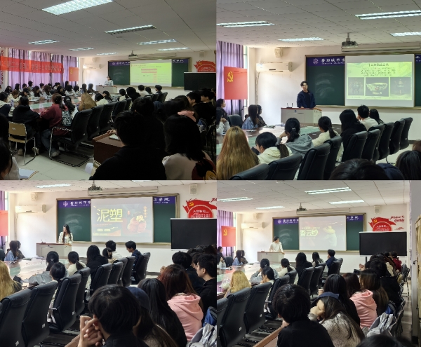 4月2日,学生党支部在A7-212会议室组织了理论学习会。会上,支部书记马锦娴围绕“深入学习习近平文化思想”这一主题开展党课,强调文化自信是更基本、更深沉、更持久的力量,要深刻把握习近平文化思想的科学内涵,并号召同学们传承弘扬中华优秀传统文化。随后,学生党员宋林根、刘晓婧、何宗霖分别介绍了掐丝珐琅、泥塑、香云纱三种非物质文化遗产。