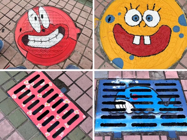 “童” 心妙绘,井盖焕新(杨唯炜 陈佩菁 摄)