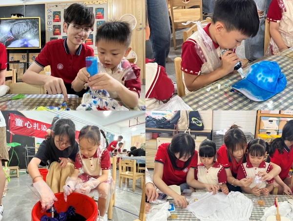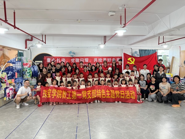 本网讯(记者 赖晓燕)5月15日下午,伟德国际1946教工第一党支部带学生志愿者走进花都区深航幼儿园附属幼儿园(学府园区),开展了一场别开生面的“童心扎染,党徽闪耀,共绘美好未来”特色主题党日活动,将传统文化的种子播撒在孩子们的心田,让党徽在传承与创新中闪耀光芒。