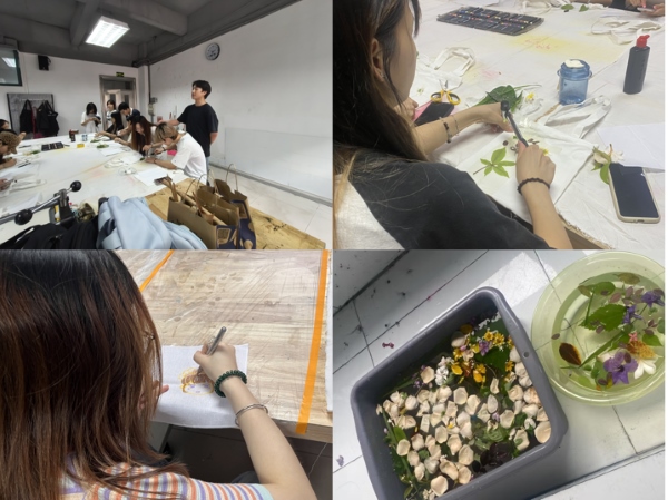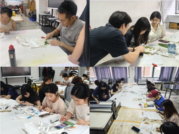 用锤子敲出自然的印记,用画笔描绘心中的世界,这种‘慢创作’不仅培养了学生的专业实践能力,更为他们提供了情绪抒发的窗口。师生自由选择帆布短袖、鹅卵石等载体进行创作,用丙烯颜料绘制个性化图案。现场锤声与画笔交织,展现了不同专业的创意碰撞。“平时上课压力很大,常常感觉焦虑。但在这次活动中,专注于手中的植物和锤子,听着有节奏的敲打声,心里特别平静,感觉找到了一种新的释放压力的方式。”谢纯分享道。