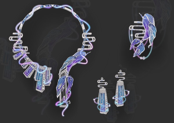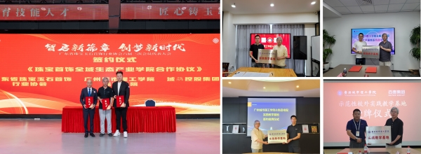 学院与广东省珠宝玉石首饰行业协会、域骉控股集团等12家行业龙头共建“珠宝首饰全域生态产业学院”,通过校企深度合作,将行业趋势转化为教育目标,确保人才培养的前瞻性与实用性,实现教育与产业需求的精准对接。产业学院设立理事会管理机制,开设“智链未来珠宝营销先锋班”“珠宝首饰卓越设计师班”两大精英班级(小班制、双导师),定制《数字化营销》《智能供应链管理》等12门“理论+实战”核心课程,实现“设计链-工艺链-营销链”全链条覆盖。通过校企协同机制,构建“创作—验证—应用”的闭环链路,将学生设计成果直接对接企业需求与市场验证。工作坊与竞赛产出的优秀作品经由企业渠道实现商业化量产,专利成果反哺企业技术升级,形成“教学输出—产业应用—反馈优化”的良性循环。