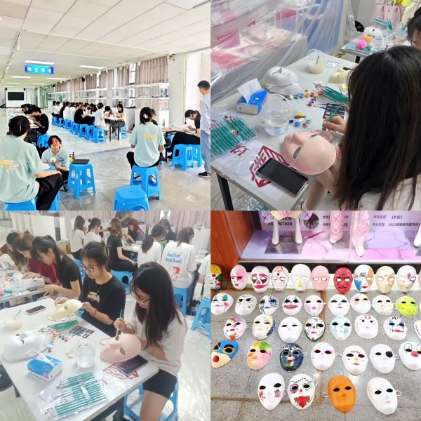 在学业和情感的共鸣下,面具彩绘活动现场气氛热烈而专注。工作人员提前准备了素白面具、丙烯颜料、画笔、调色盘、水桶等工具。在简要了解绘制注意事项后,同学们纷纷执笔,充分发挥想象力,在面具上勾勒心中图景。创作过程中,现场沉静,只余画笔与面具的沙沙声。参与者作品风格各异:有的绘制夸张的小丑形象,传递对欢乐与幽默的追求;有的精心描绘传统花脸,线条细腻、色彩和谐,展现对文化的理解;还有的将生动动画角色跃然“面”上,彰显青春活力,每一幅面具都成为独特的情感载体。