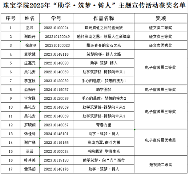 本网讯(记者 严志洋)为持续讲好中国学生资助故事,充分展现新时代受助学子自强不息、奋发向上的精神风貌,激励广大青年心怀感恩、立志成才,伟德国际1946学子积极参与“助学·筑梦·铸人”主题宣传活动。活动涌现出一批主题鲜明、情感真挚的优秀作品,生动诠释了新一代大学生在国家资助政策关怀下的青春奋斗风采。以下是获奖名单: