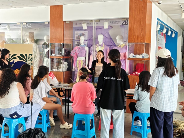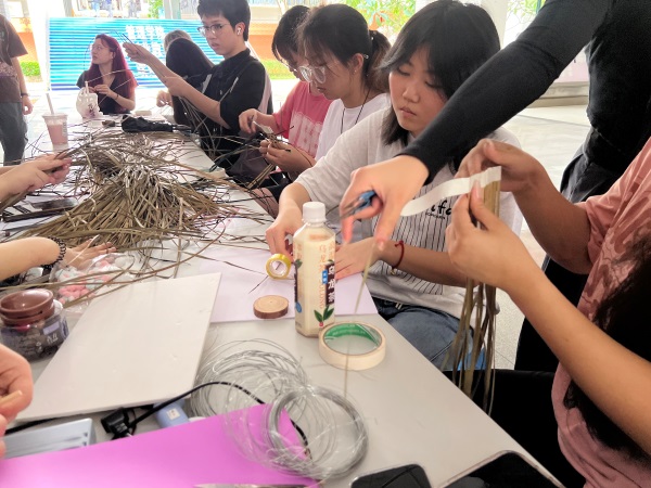 活动伊始,李然老师化身“非遗引路人”,向同学们娓娓道来蒲草的来历与背后故事。从蒲草生长的自然环境,到其在雷州地区的悠久历史,她的生动讲述,让同学们深刻认识到蒲草不仅是编织材料,更是承载着当地人民智慧与情感的文化符号。随后,李然详细讲解了雷州非遗蒲草的基础编法,从起编手法到纹理走向,每个步骤都细致入微,同学们认真聆听、仔细观察,为后续创作打下坚实基础。