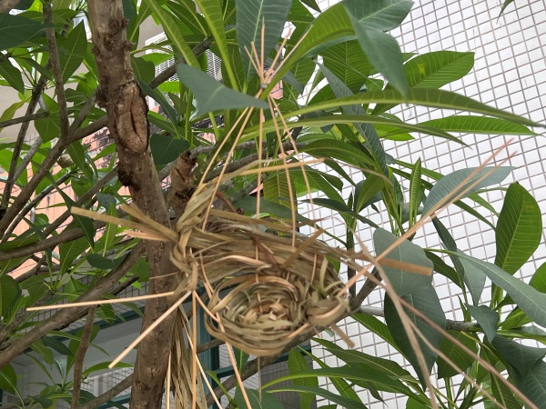 在自由创作环节,活动秉持“不限制思想自由”的理念,鼓励同学们大胆发挥想象力与创造力。同学们纷纷拿起蒲草,化身“小小编织家”,将所学技法灵活运用。有的同学编织出造型别致的鸟窝,有的同学打造出精巧可爱的仓鼠屋,还有同学结合现代设计元素,创作出独具个性的小动物栖息之所。一根根普通蒲草在同学们手中“七十二变”,变成了一个个充满创意与温情的“动物之家”。
