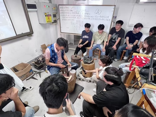 在展览筹备前期,为让学生更深入地领略首饰传统工艺的魅力,学院邀请了中国工艺美术大师寸光伟来校举办工作坊教学活动。寸大师凭借着精湛的技艺和丰富的经验,为学生们带来了一场场精彩绝伦的技艺盛宴。他擅长錾刻工艺,手持錾子在金属表面轻轻敲击,细腻的纹理便在金属上逐渐显现。同时,一边操作,一边向学生讲解錾刻的技巧和要点,从力度的把握到角度的选择,每一个细节都讲解得细致入微。学生们在寸老师的启发下,发挥自己的创意,将心中的图案通过錾刻工艺呈现在金属上,创作出了许多独具个性的作品。通过大师工作坊的教学,学生们不仅学到了精湛的首饰传统工艺技艺,更深刻体会到了传统工艺背后所蕴含的文化内涵和精神价值。这些宝贵的经验和技艺,为学生们后续的创作奠定了坚实的基础。