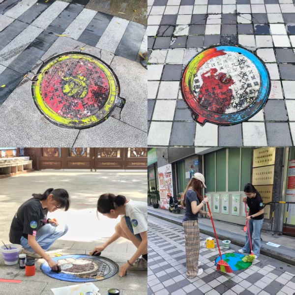 经过数日努力,社区内的井盖焕然一新:褪色的图案重焕鲜亮,模糊的生活场景轮廓分明,新添的童趣元素灵动活泼,成为街巷中一道独特的风景线。社区居民路过时总会驻足观赏,孩子们围着井盖上的图案奔跑嬉戏。社区负责人在查看成果时,对实践团的细致工作表示肯定,认为这些彩绘井盖不仅美化了环境,更拉近了邻里距离,是一次将艺术与社区治理巧妙结合的有益实践。