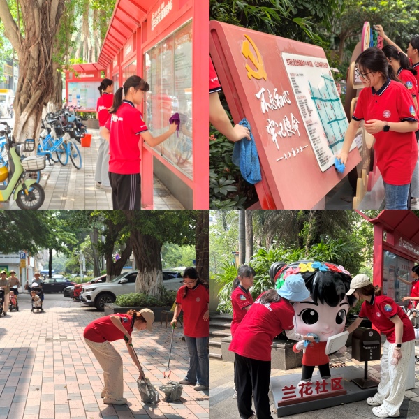 队员们清理社区内的宣传栏和绿化带(邝钰婷 段文雅 摄)