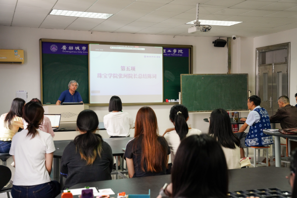 本网讯(记者 钟浩然 王心雨)7月4日上午,珠宝首饰全域生态产业学院首届卓越设计师班第一期课程总结汇报会在A7-406教室圆满举行。同学们以饱满的热情向张珂院长及专业教师团队展示了为期一学期的学习成果,并发布了基于课程内容自主设计的校园文创品牌,现场创意涌动、亮点纷呈。