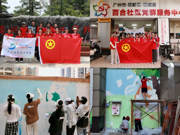 7月3日,绘韵同行突击队三下乡活动正式启动。午后,队员们于学校校名石前举行开幕仪式,喊出“画笔勾勒乡土韵,青春奔赴三下乡”口号,开启实践之旅。随后,队伍抵达花都区百合社区,凭借前期完成的墙壁测量与场地考察工作,迅速与社区工作人员对接,确认绘画方案,有序推进颜料整理分配、场地清洁、墙皮处理、高脚架搭建等准备工作,为后续创作筑牢基础,其间拍摄小视频,留存青春奋进瞬间,传递三下乡的热忱 。