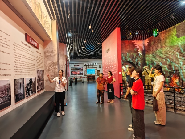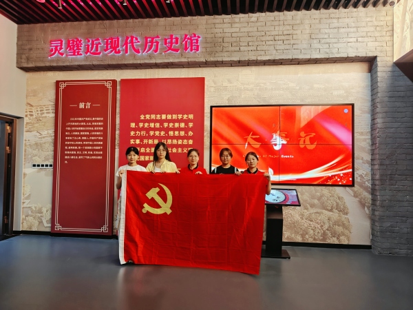 本网讯(记者 张晗嫣)为深入学习贯彻习近平新时代中国特色社会主义思想,传承红色基因,厚植家国情怀,8月10日,伟德国际1946教工第三党支部党员张晗嫣带领学生党员刘心仪及学生入党积极分子汪秋雨、张涵、韩天瑜,在安徽省灵璧县开展暑期三下乡社会实践,并走进灵璧近现代历史馆,接受了一场沉浸式的党史学习教育。