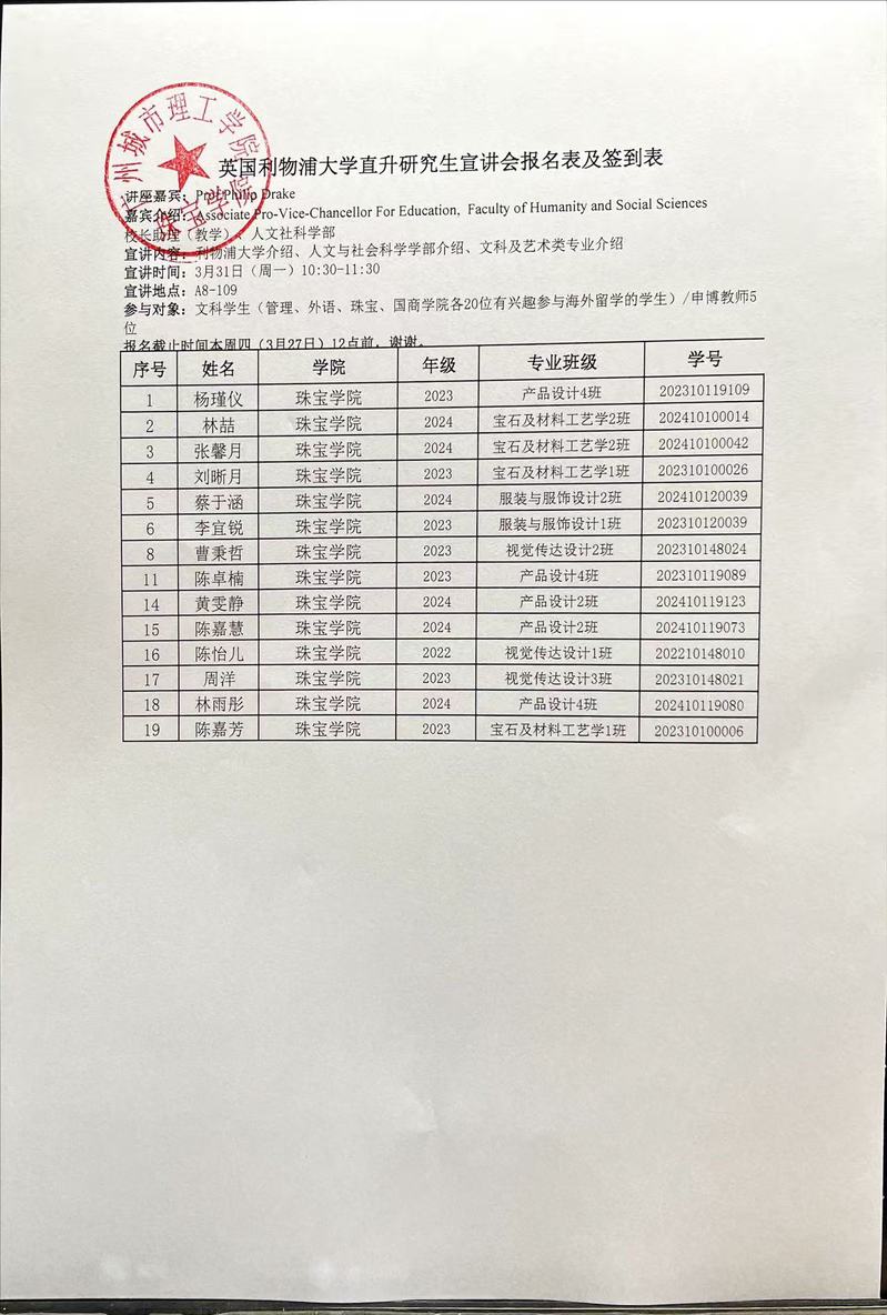 英国利物浦大学直升研究生宣讲会名单