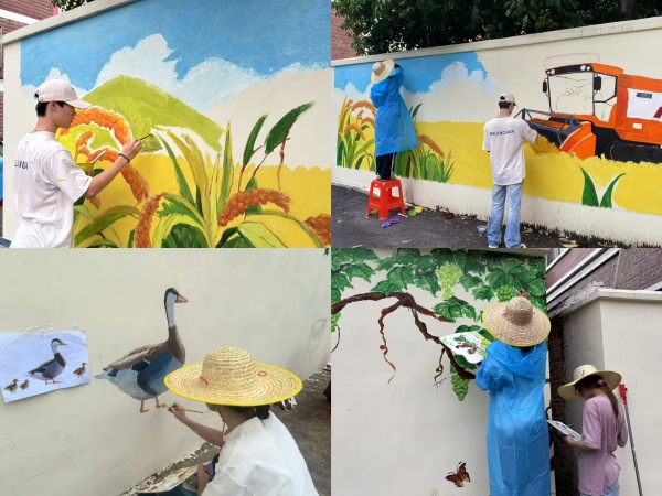此次墙绘实践不仅为大有村带来了直观的村容提升,更在多方面产生了积极影响。从实践成果来看,墙绘作品成为大有村新的视觉焦点,有效提升了村庄整体形象,为后续文旅推广打造了标志性景观;从团队成长来看,参与实践的不同专业成员各有所获,创意设计专业成员实现了从图纸构思到实地落地的转化,绘画相关专业成员在大型墙绘创作中精进了色彩运用与技法水平,全体成员在协作中深刻体会到跨专业配合的重要性,更直观感受到“艺术赋能乡村”的实践价值。